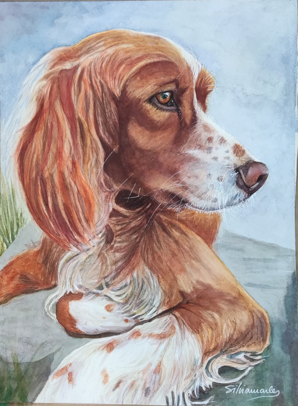Joyera, interiorista y pintora especializada en retrato de animales combinando distintas técnicas y materiales de pintura (acuarela, carboncillo, lápiz color, óleo, tinta…) y digitales. «